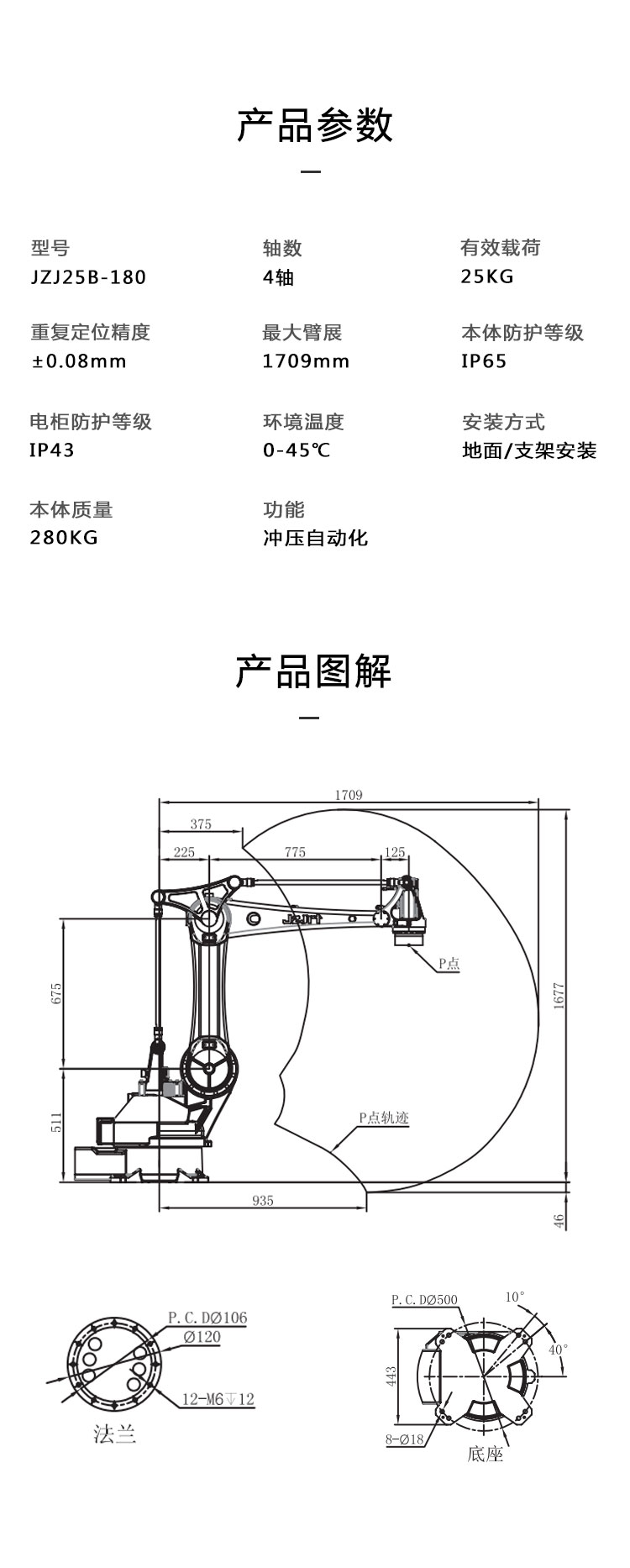 載荷25Kg臂展1800mm四軸沖壓機器人